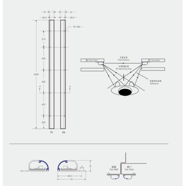 Weco Elevator Products Integrated 3D Pretection Door Detector154 Beams