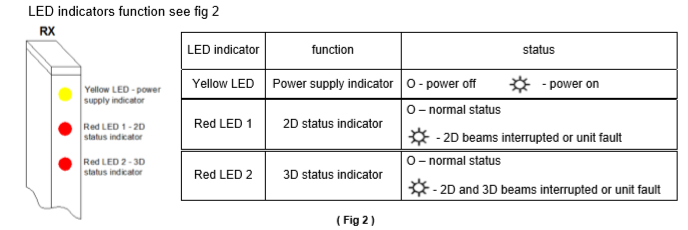 | LED Interpretation | 1. Yellow LED and Red LED in Receiver on when blocked or in malfunction. | |